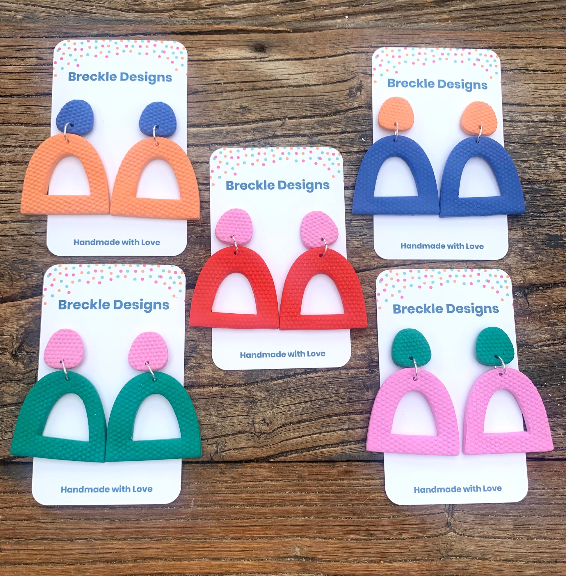 These modern, lightweight earrings are handmade from quality polymer clay, making them easy and comfortable to wear everyday.