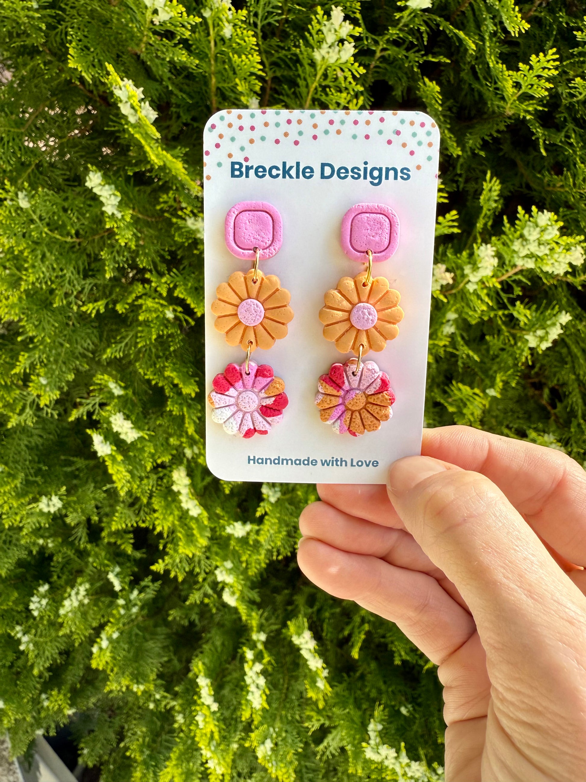 Your earrings are handmade from Polymer Clay. They are durable however treat with care. Please store in a clean and dry area and avoid swimming and showering.