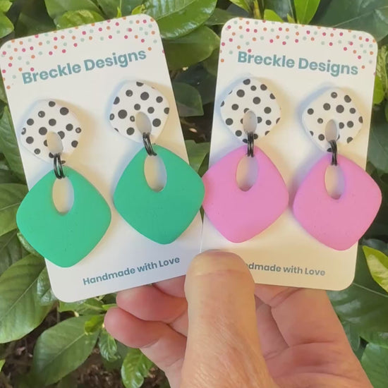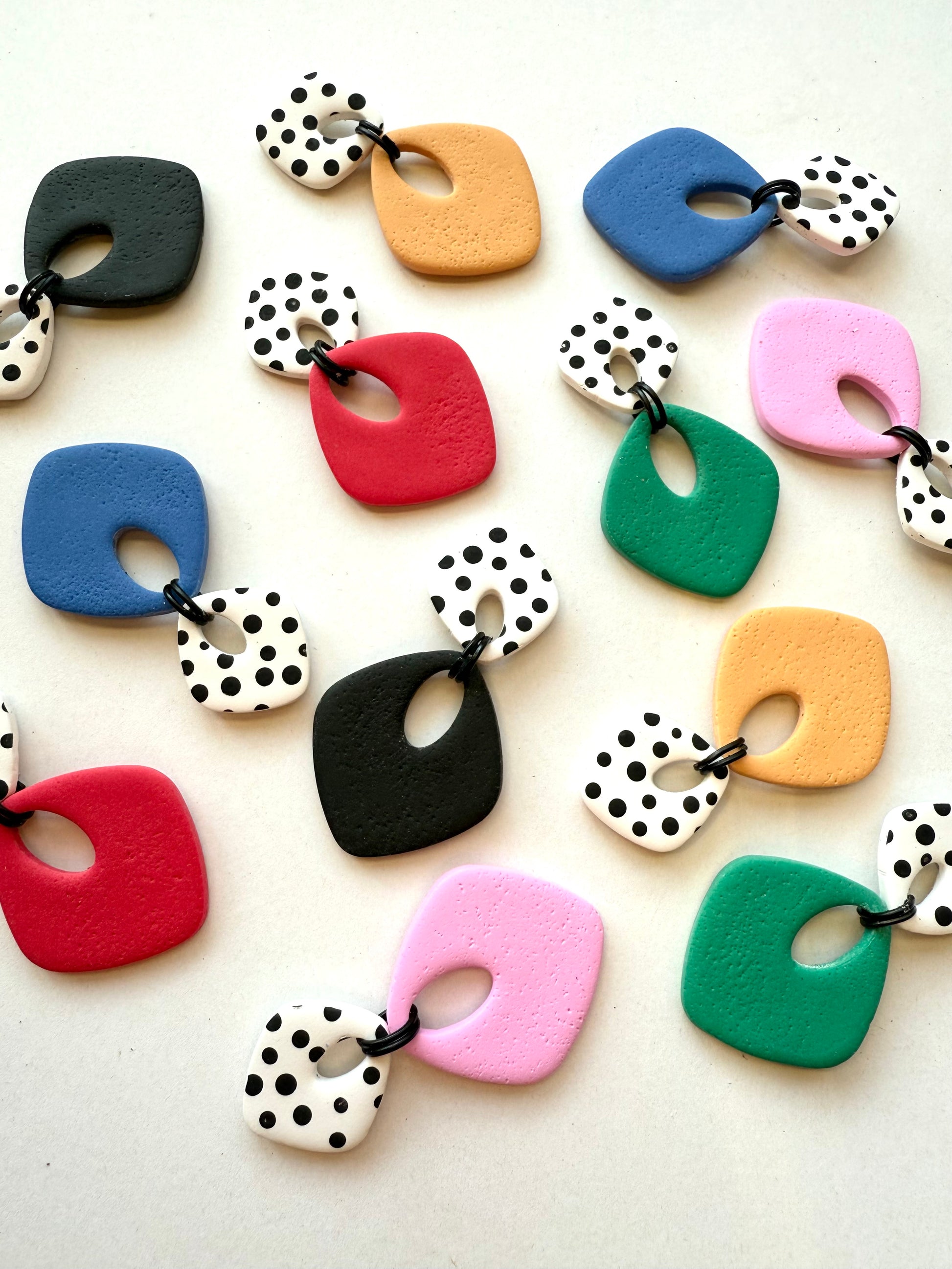 These modern, lightweight earrings are handmade from quality polymer clay, making them easy and comfortable to wear every day.