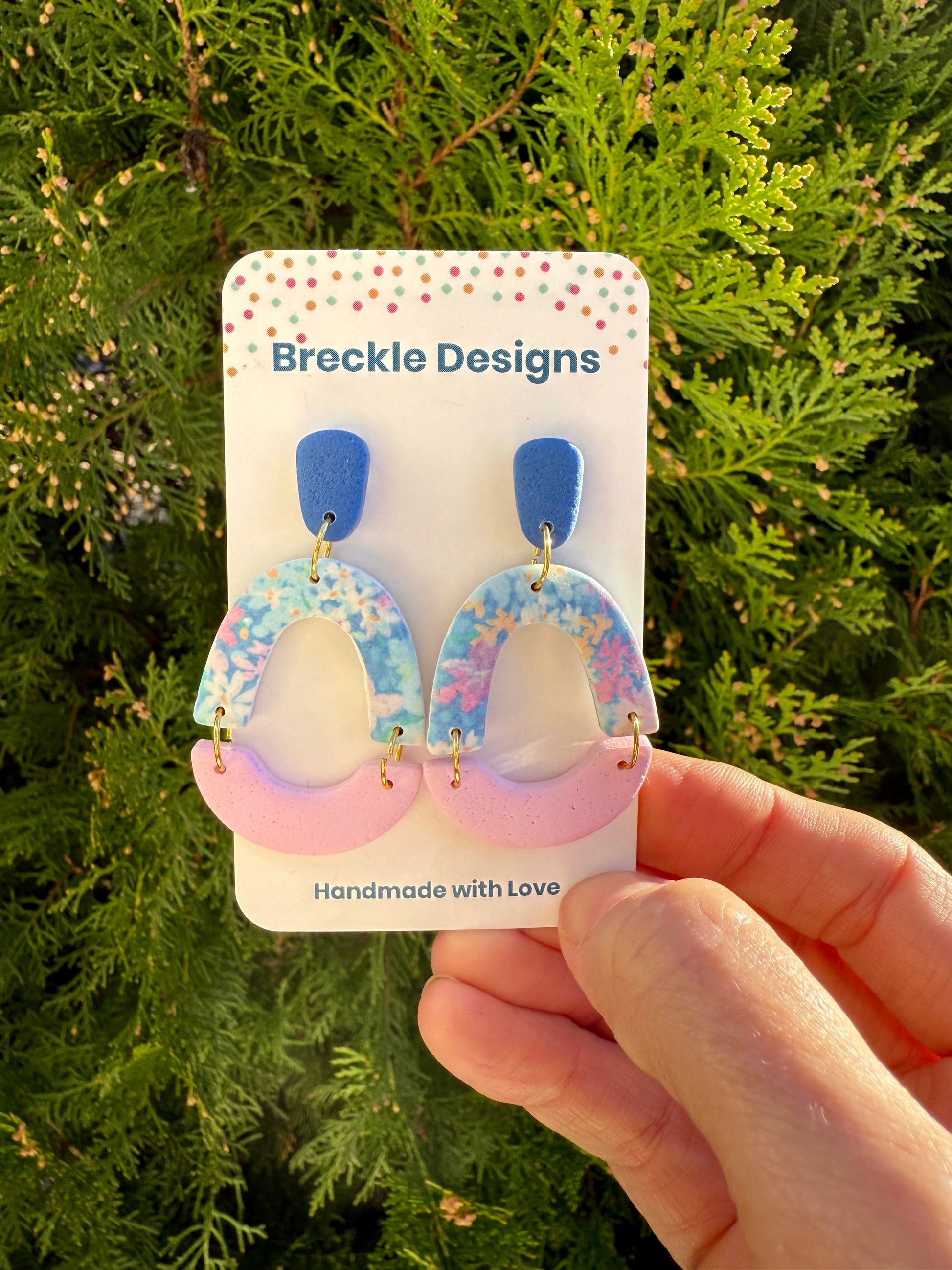 Your earrings are handmade from Polymer Clay. They are durable however treat with care. Please store in a clean and dry area and avoid swimming and showering.