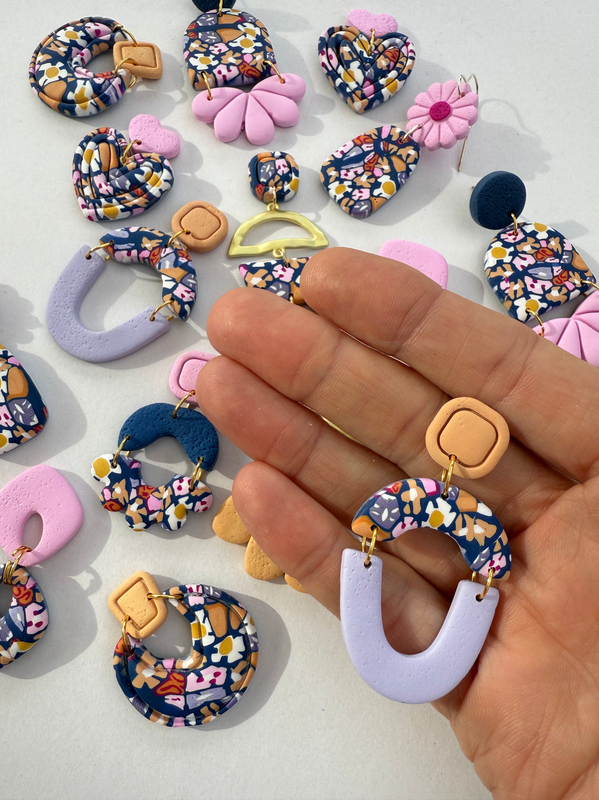 These modern, lightweight earrings are handmade from quality polymer clay, making them easy and comfortable to wear everyday.