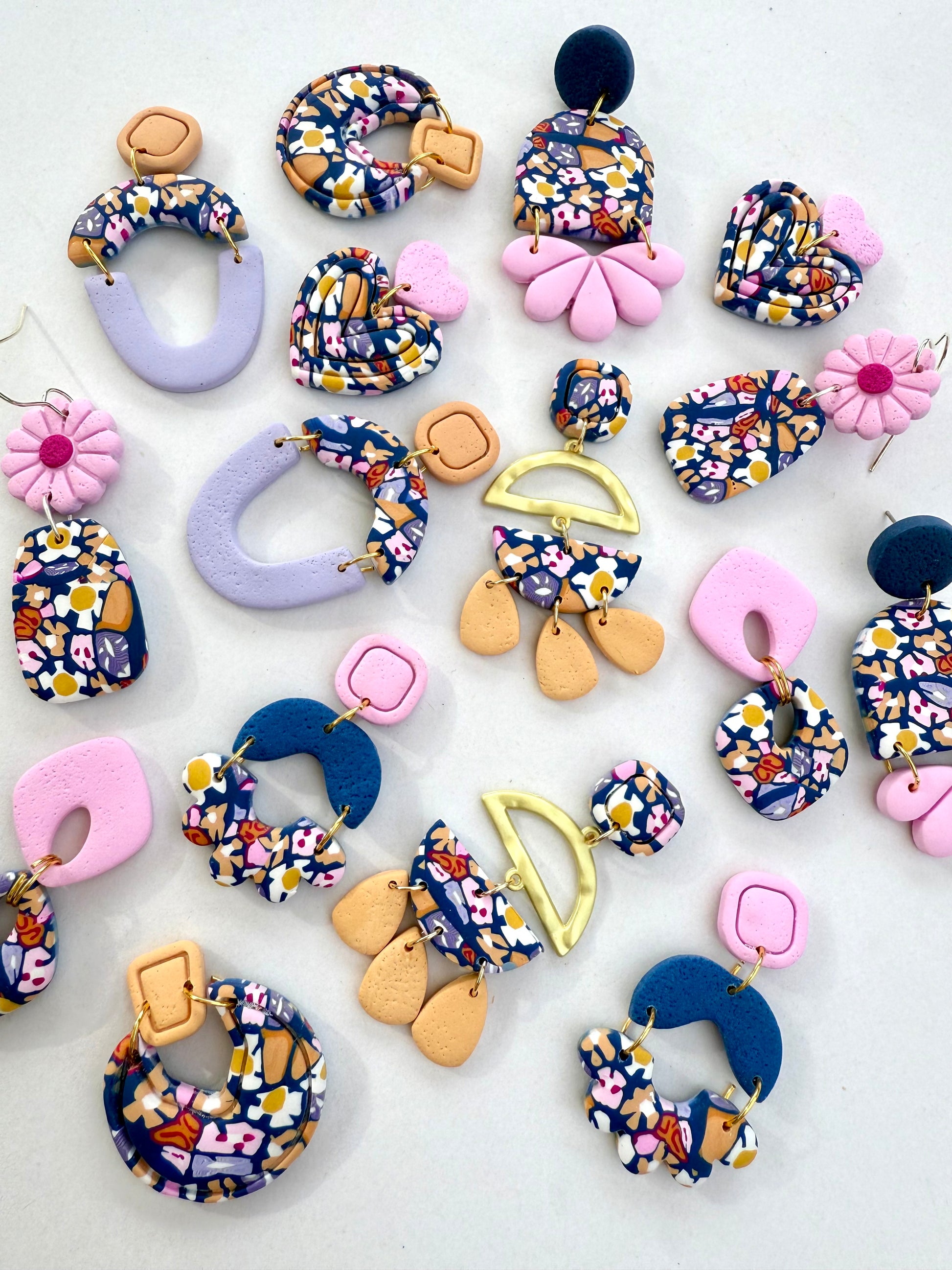 These modern, lightweight earrings are handmade from quality polymer clay, making them easy and comfortable to wear every day.