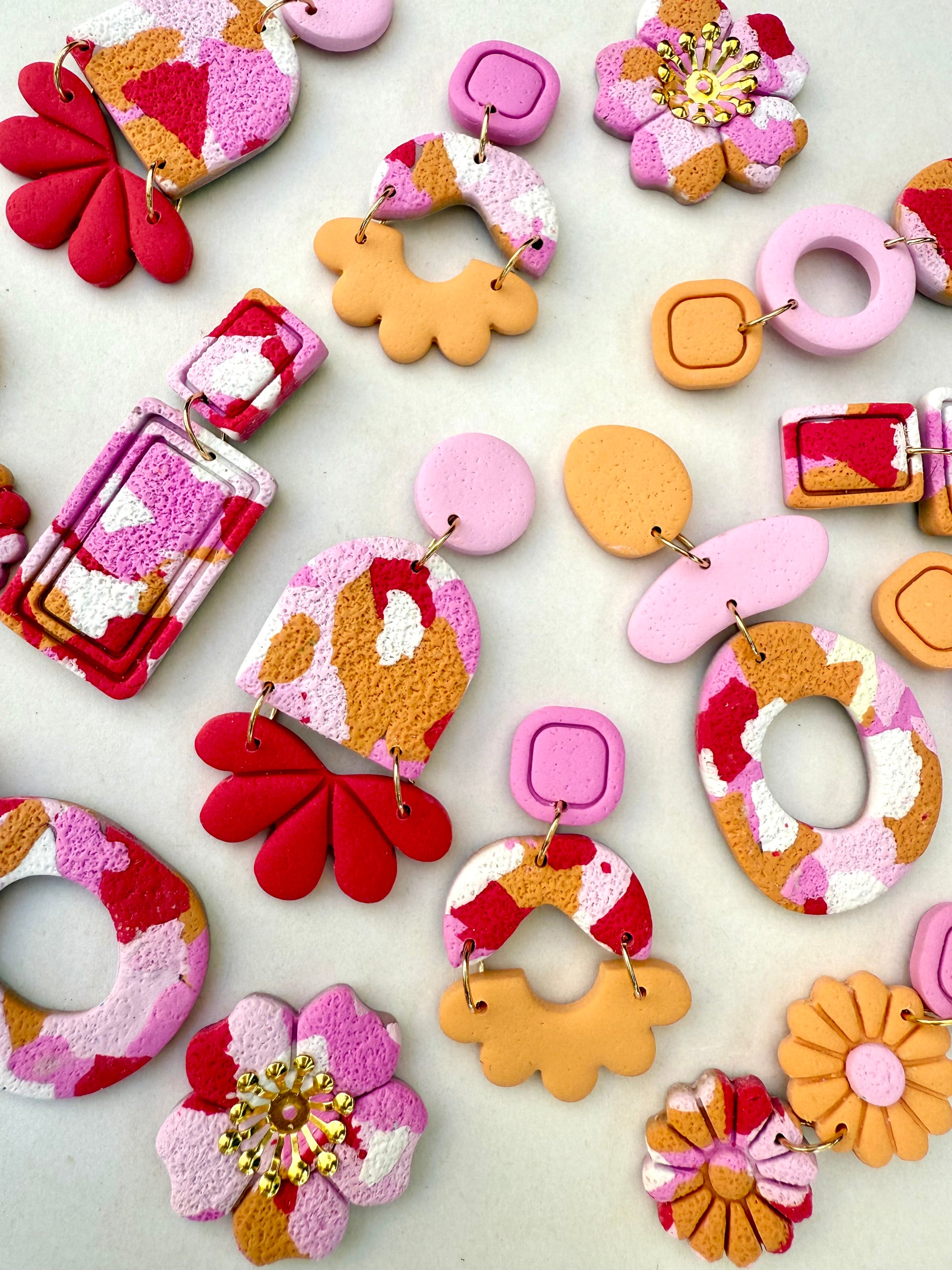 These modern, lightweight earrings are handmade from quality polymer clay, making them easy and comfortable to wear every day.