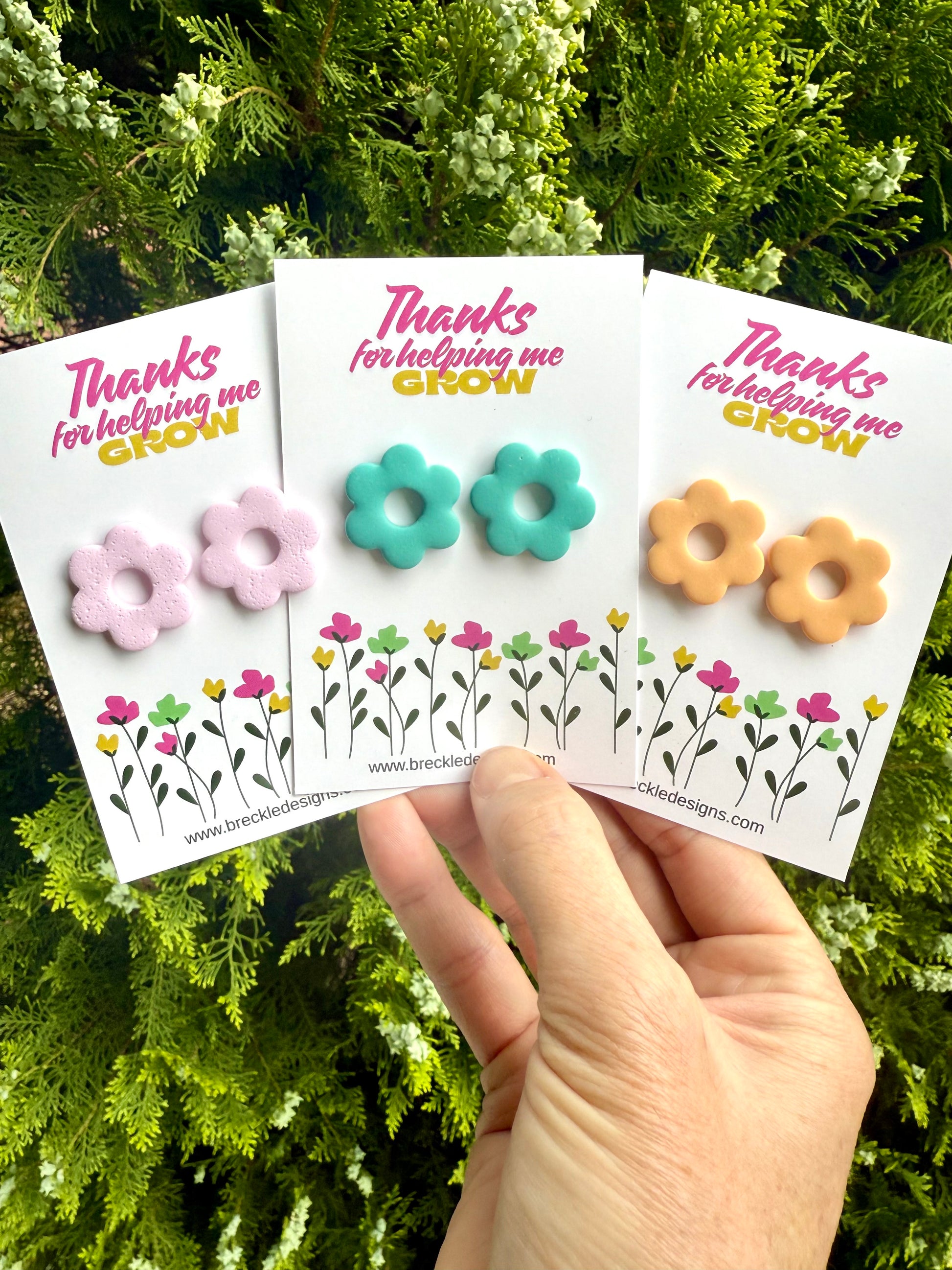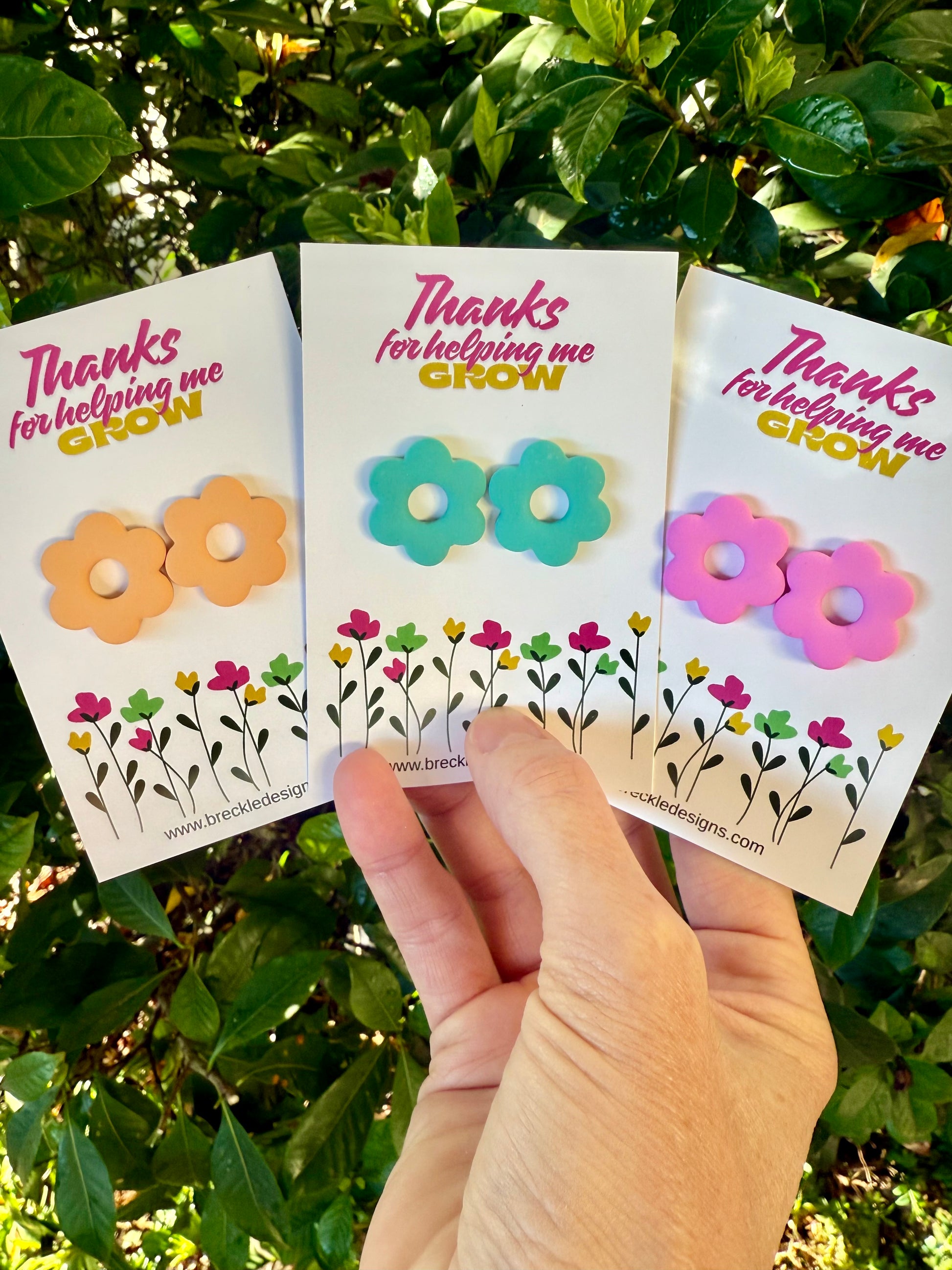 Beautiful bloom stud earrings with a "Thanks for Helping Me Grow Card" - a meaningful teacher/educator gift for Christmas or end of the school year.