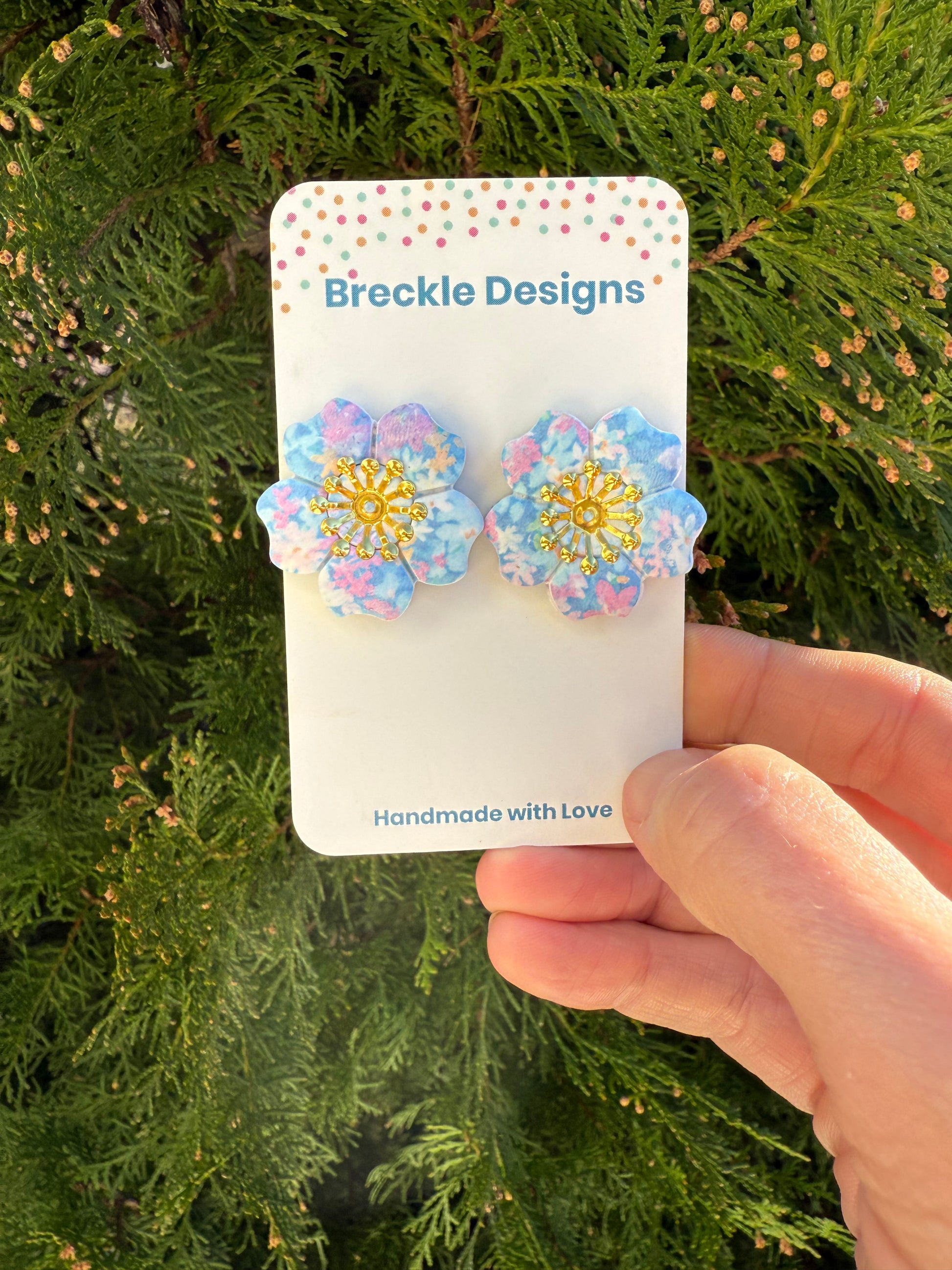 Your earrings are handmade from Polymer Clay. They are durable however treat with care. Please store in a clean and dry area and avoid swimming and showering.